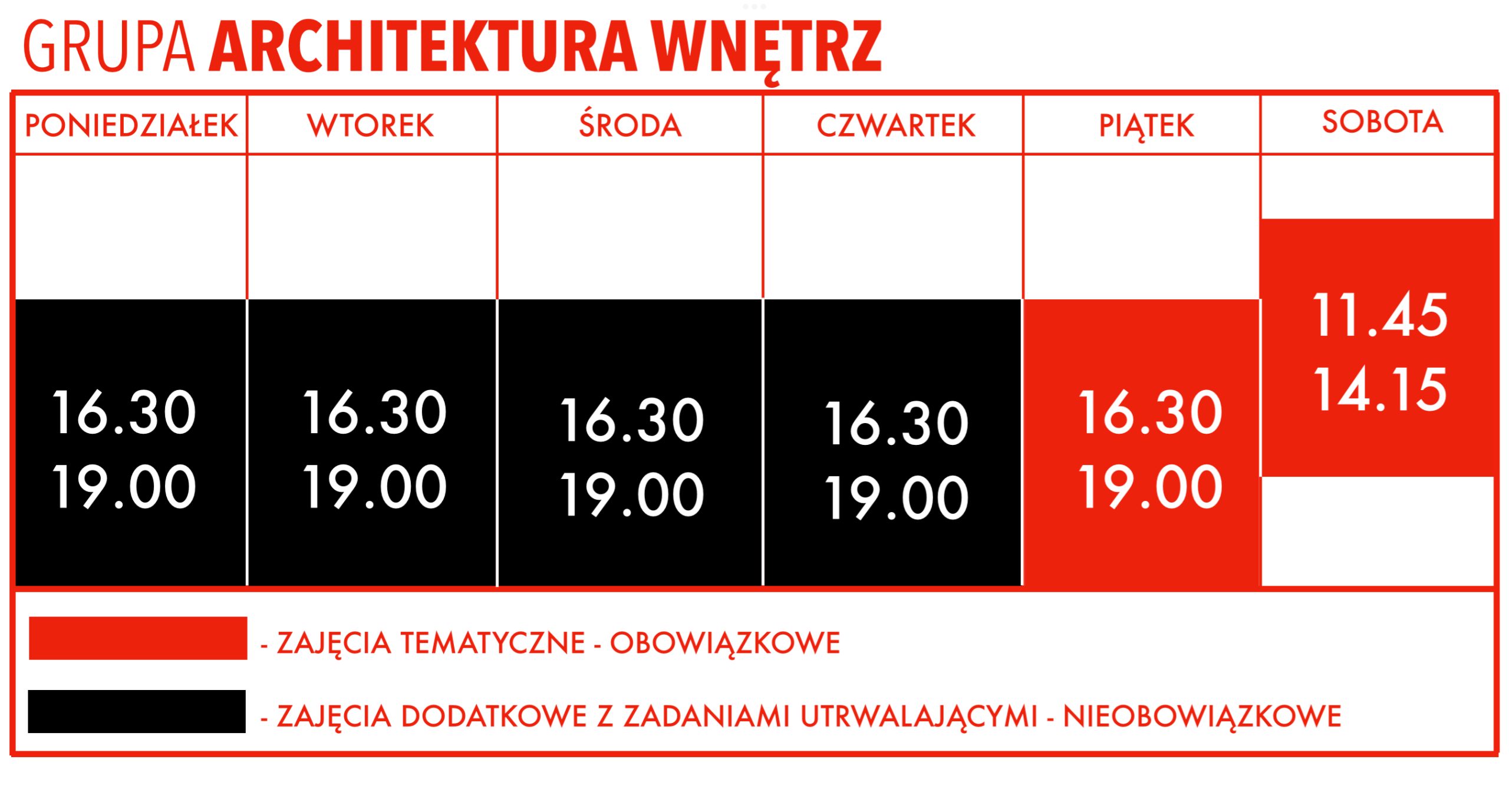 Cały czas na zajęciach poświęcamy na tematy, techniki i zagadnienia związane z tymi kierunkami studiów. Dodatkowo, jako jedyny kurs w Polsce oferujemy szereg warsztatów niezwykle wartościowych dla przyszłego architekta.