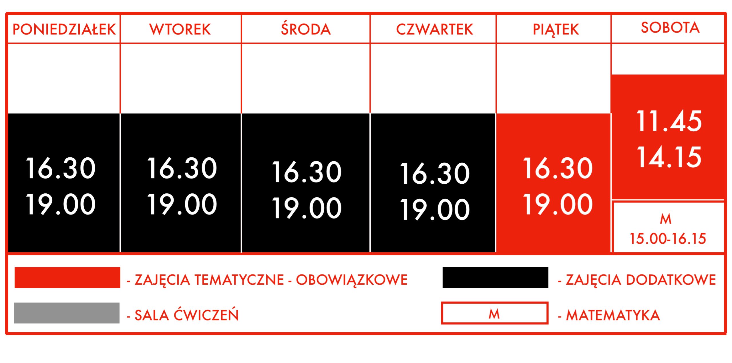 W 2021 roku stworzyliśmy specjalną grupę dla osób rozpoczynających przygotowanie do egzaminu w klasie maturalnej – tzw. TRYB PRZYSPIESZONY. Zaznaczamy jednak, że optymalny czas przygotowania do egzaminów i studiów to 2-3 lata.
