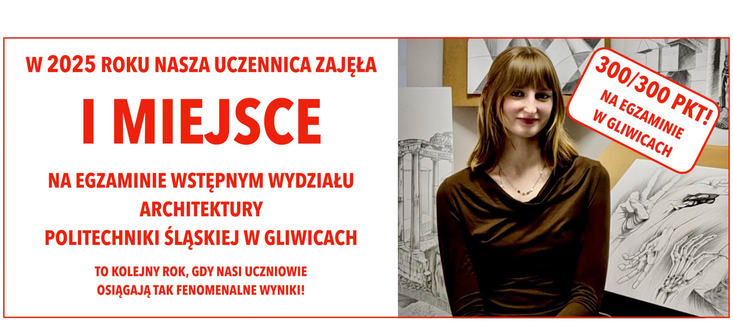 KOLEJNY RAZ NASZA UCZENNICA ZDOBYŁA MAKSYMALNĄ LICZBĘ PUNKTÓW NA EGZAMINIE WSTĘPNYM NA ARCHITEKTURĘ W GLIWICACH I ZAJĘŁA PIERWSZE MIEJSCE SPOŚRÓD WSZYSTKICH KANDYDUJĄCYCH!
