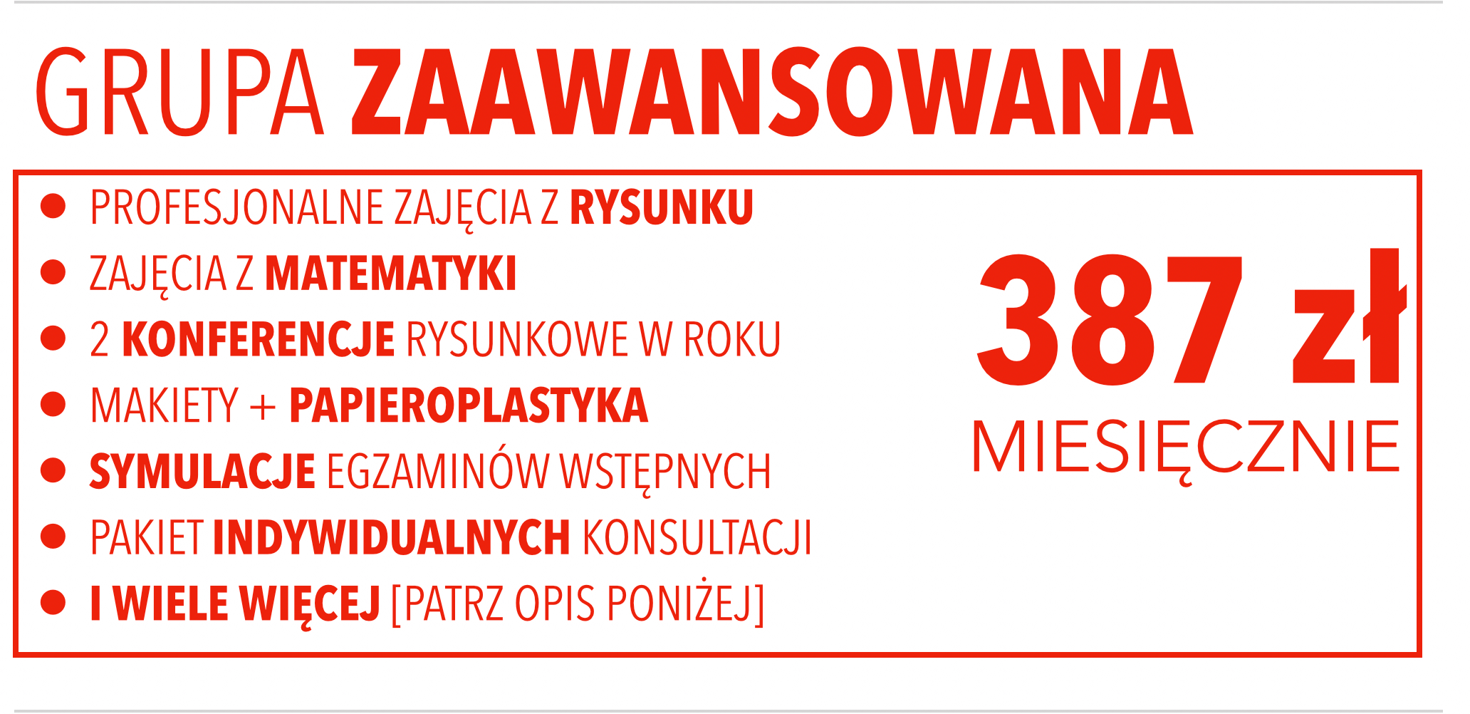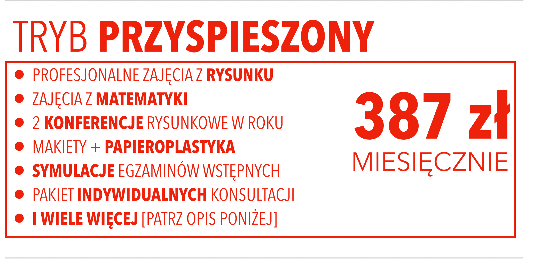 - możliwość uczestnictwa w zimowych maratonach rysunkowych [dla osób zdających w danym roku szkolnym – zajęcia płatne dodatkowo],